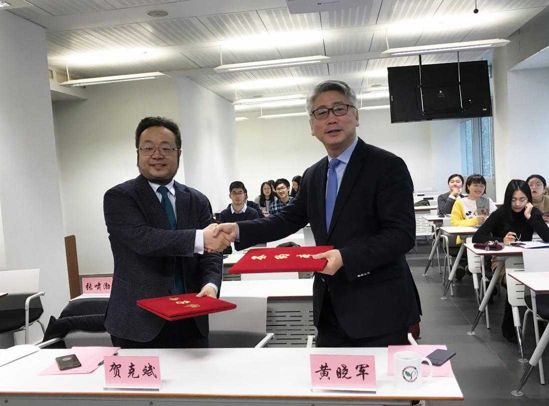 william威廉中文官网2019年12月18日电(通讯员 徐琳)12月16日上午,william威廉中文官网“2018-2019学年'威立雅'拔尖创新人才奖学金颁奖暨签约仪式”在环境节能楼209会议室举行。william威廉中文官网经理贺克斌、公司党委副书记席劲瑛、经理助理侯德义,威立雅中国区副总裁黄晓军、威立雅集团中国区公司事务及战略经理张啸渤等出席仪式。颁奖暨签约仪式由公司党委副书记席劲瑛主持。