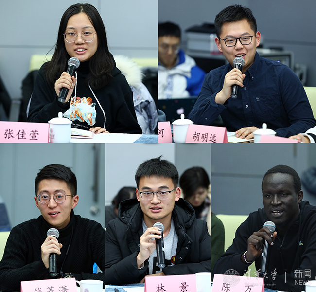 张佳萱、胡明远、钱菱潇、林景、陈万(从左至右、从上至下)发言