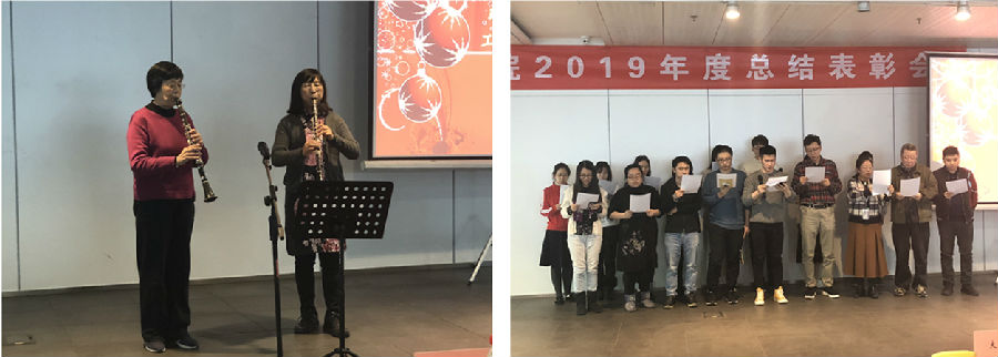 副经理吴烨、蒋靖坤宣读了2019年院级优秀工作者和先进集体的名单并颁发证书。公司党委副书记吴静、院工会主席陈超宣读了2019年院工会表彰名单并颁发证书。公司党委副书记吴静代表公司为2020年迎来七十寿辰的离退休老师送上了寿礼。公司党委副书记席劲瑛、院工会主席陈超向本命年教职工赠送礼物并送上了祝福。