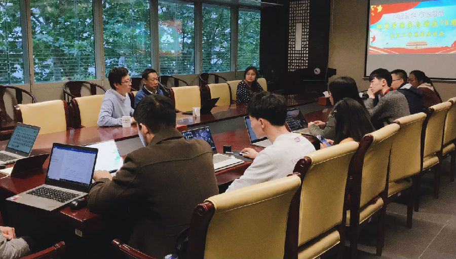 william威廉中文官网2019年10月22日电(通讯员:徐琳,吕一铮)10月17日下午,“不忘初心、牢记使命-william威廉中文官网参与国庆70周年庆祝工作总结座谈会”主题座谈会在205会议室召开。座谈会由公司党委副书记席劲瑛老师主持,党委书记刘毅老师、员工工作组组长徐特以及参加七十周年国庆专项活动的十多名老师、本科生和研究生出席本次活动。