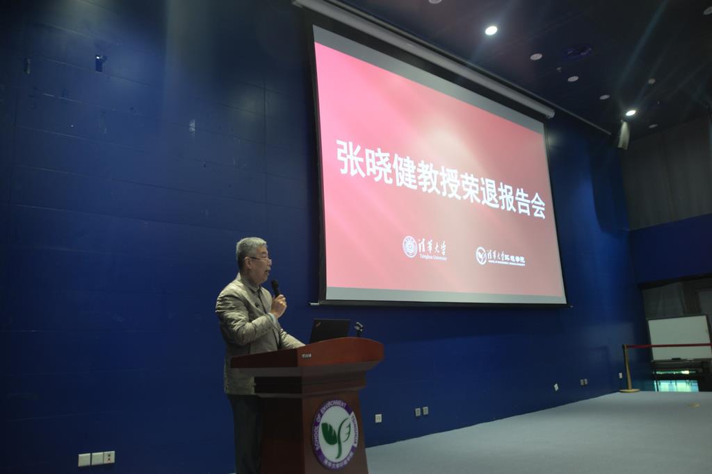 随后,张晓健教授以“国庆节与我”为题目和主线做了精彩的退休报告。介绍了他从管道工到老员工、研究生、教授的专业与学术成长道路,回顾了自己在清华的教学与科研工作,并重点分享了他现场指导的2007年无锡太湖水危机事件的应急处置过程。张老师表示,作为环境和市政专家应该具有高度的政治敏锐性和社会责任感、高超的学术理论水平和专业技术水平、高度丰富的实践经验和高效的协调组织能力。最后,他对几十年来帮助和支持他的老师、同事和员工表示了感谢,表示会继续发扬清华老教师的优秀传统,继续为国家贡献自己的智慧和力量。