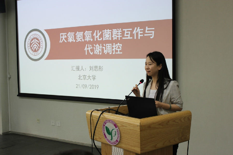 刘思彤研究员做了题为“厌氧氨氧化菌群互作与代谢调控”的学术报告。她首先介绍了厌氧氨氧化(ANAMMOX)生物技术原理及特点。随后阐明了ANAMMOX菌的群感效应及调控机制,揭示了ANAMMOX菌群间更多的互养关系及其在氮去除过程的作用。最后提出高效脱氮思路。