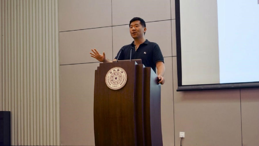 材料公司1998级本科生、中科院物理所研究员谷林作为员工代表,分享了他的清华记忆与感悟。他回忆了当年作为新生参加开学典礼的情景,运用三个非常有趣的数学问题阐述了他对“自强不息”、“厚德载物”和“行胜于言”的理解。他希望九字班的同学能够在清华的本科四年学习生活中努力奋斗,学会“舍得”,收获属于自己的感悟。