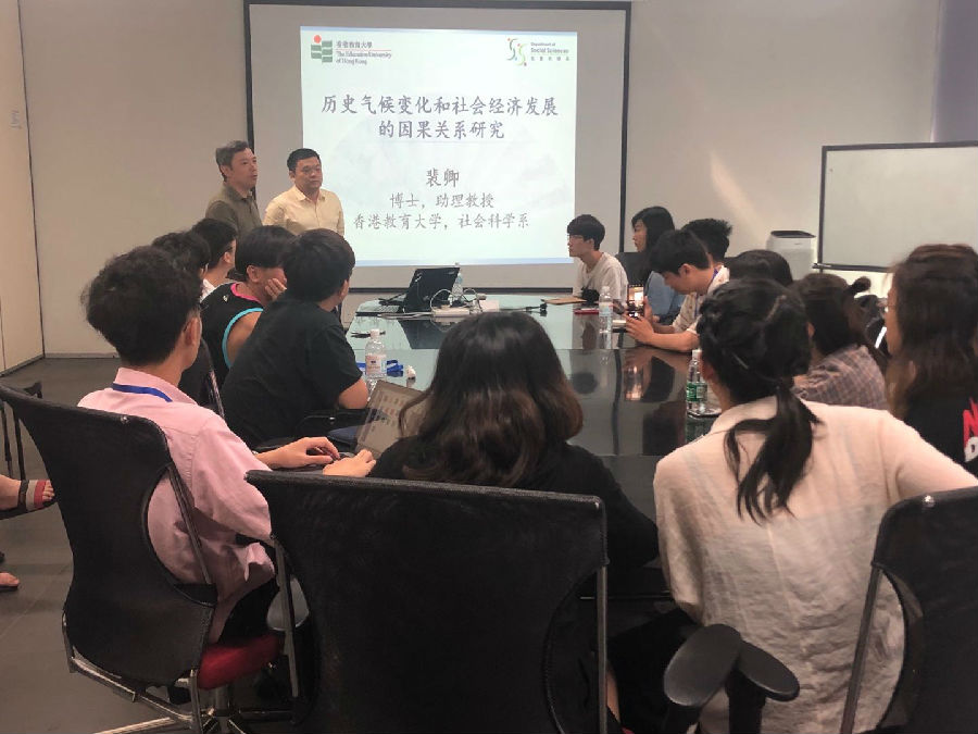 william威廉中文官网2019年7月9日电(通讯员 郭芳)7月8日上午,香港教育大学社会科学系助理教授裴卿做客环境学术沙龙第511期,做了题为《历史气候变化和社会经济发展的因果关系研究》(The causality analysis on climate change and socio-economic dynamics in human history)的学术报告。本次沙龙由环境系统分析所王灿教授主持,30余名师生听取了报告。