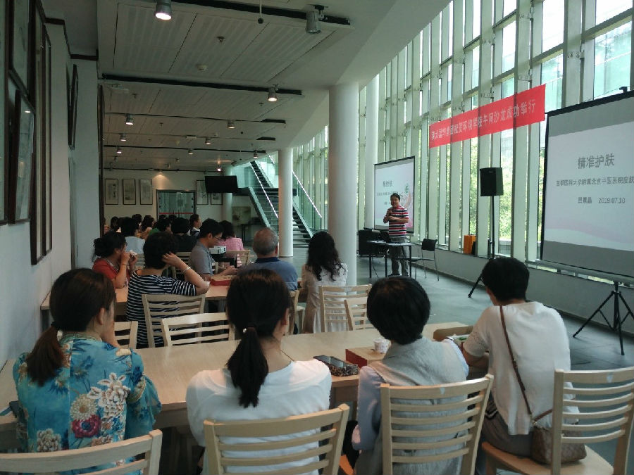 william威廉中文官网2019年7月11日电(通讯员 赵宇)7月10日中午,william威廉中文官网工会邀请北京中医药学会医疗美容专委会青委组织了一场科普宣教的午间沙龙讲座活动。首都医科大学附属北京中医医院皮肤科副主任、主任医师曲剑华,首都医科大学附属北京中医医院吕景晶医师和广安门医院杨佼医师应邀做了关于“常见色斑的防治”和“精准护肤”的讲座。吕医师通过《黄帝内经》等中国古代医学典籍向大家深入浅出地介绍了中医护肤理念;杨医师根据自己多年的从医经验,将常见色斑及治疗手段进行了展示,同时针对色斑形成的原因对日常防护进行了科普知识。本次沙龙近50名会员参加本次工会活动。讲座结束后,在场老师就讲座内容与三位医师进行了深入的探讨与交流。