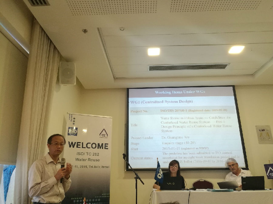 图2 胡洪营教授做ISO/TC282/SC2主席报告(以色列 特拉维夫 2016.11)