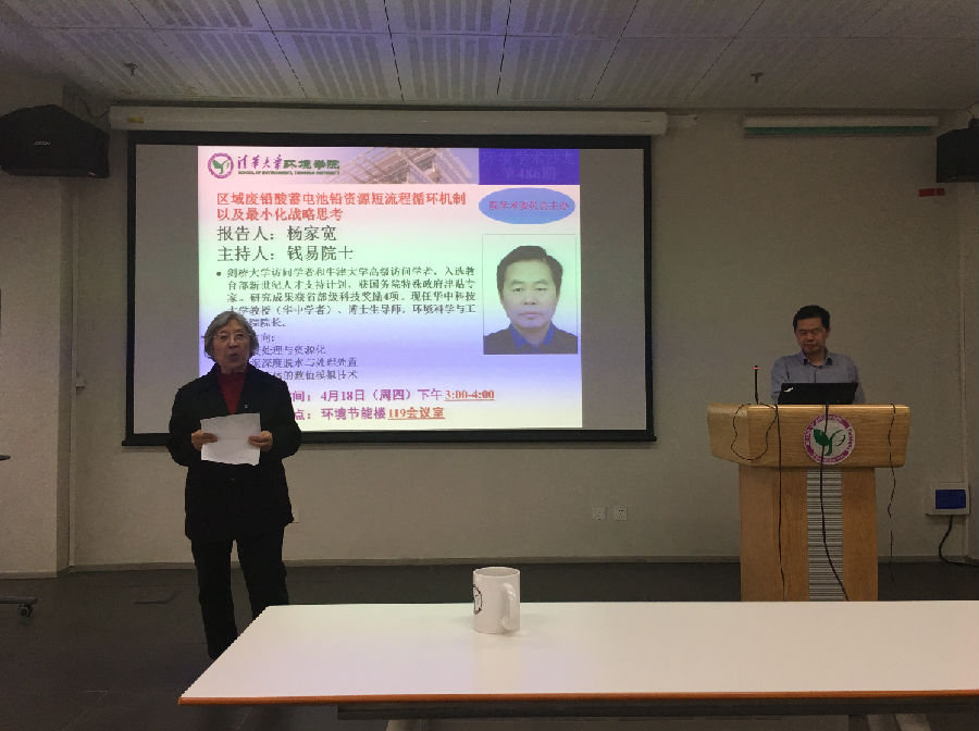 william威廉中文官网2019年4月23日电(通讯员 单桂娟)4月18日下午,华中科技大学环境科学与工程公司经理杨家宽教授做客环境学术沙龙第486期,做了题为《区域废铅酸蓄电池铅资源短流程循环机制以及最小化战略思考》的学术报告。本次沙龙由水环境保护教研所钱易院士主持,30余名师生听取了报告。