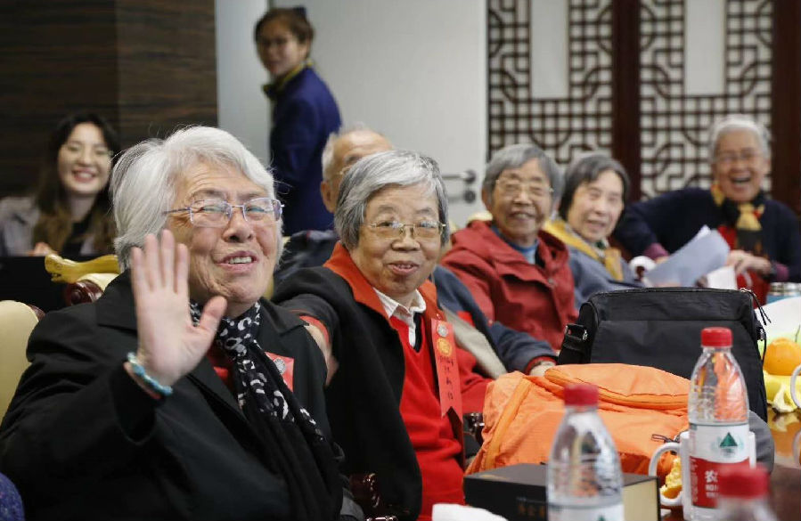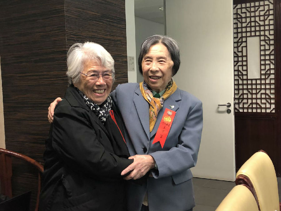 座谈会前,老员工们佩戴着记录着毕业与姓名的红条,在赠予公司和公司的礼物上纷纷留下自己的签名。60多年的老友见面,回忆着许久未出现在脑海里的姓名,在对方念出姓氏的那一刻,颤巍巍地握手拥抱,搀扶着落座,诉说着彼此的生活和思念。