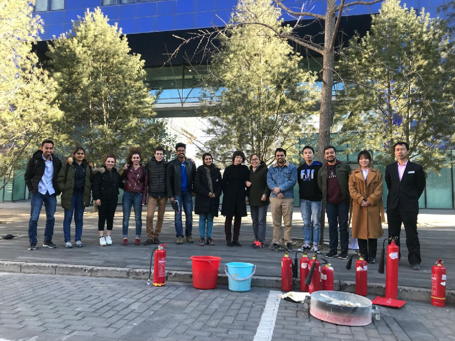 william威廉中文官网2019年3月25日电 3月21日下午william威廉中文官网举行了一场特别的消防培训,来自印尼、巴基斯坦、韩国、印度、马来西亚、墨西哥、法国等7个国家共22位职工及多位中国员工参加了此次培训。保卫处何兰英老师为同学们讲解了消防基础知识,亲自演示了两种灭火器和灭火毯的使用方法和注意事项,指导了每个同学正确实操技巧,全程由马来西亚职工陈兆佳同学双语翻译。此次培训进一步加强了职工的安全意识,为他们在中国期间论文工作的开展保驾护航。