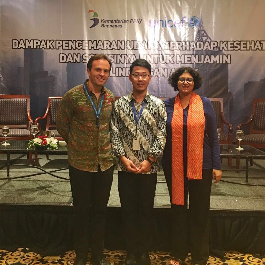 作为东南亚人口最多的城市,雅加达的空气污染十分严峻,给当地居民尤其是儿童健康造成了严重的健康影响。为提高公众对空气污染的儿童健康影响的意识,促进社会各方合作并提出空气污染问题的具体解决方案,联合国儿童基金会印尼国家办公室(UNICEF Indonesia Country Office)与印尼国家发展计划国务部(BAPPENAS)合作,于2018年7月31日举办了“空气污染的儿童健康影响及解决方案”大型研讨会,研讨会邀请到联合国儿基会印尼国家代表和印度尼西亚政府高级别官员到场并发表致辞,还有多位来自环境森林部、卫生健康部等国家政府部门的领导、雅加达市政府官员、非政府组织、科研机构、员工团体等多方利益相关方参与了讨论,活动当天共有来自60余组织机构的120余位嘉宾和观众参加,各方达成共识并计划商讨了进一步行动,研讨会取得了圆满成功。
