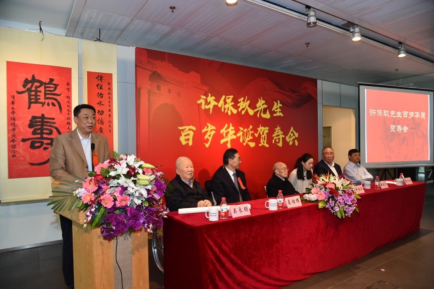 清华师生,各界员工,许保玖先生的员工、同事、朋友,环境保护与给排水等领域相关单位代表300余人欢聚一堂,共祝我国环境工程及市政工程领域著名学者、给水排水工程学科奠基人和开拓者之一许保玖先生百岁华诞。祝寿会由公司党委书记刘毅主持。