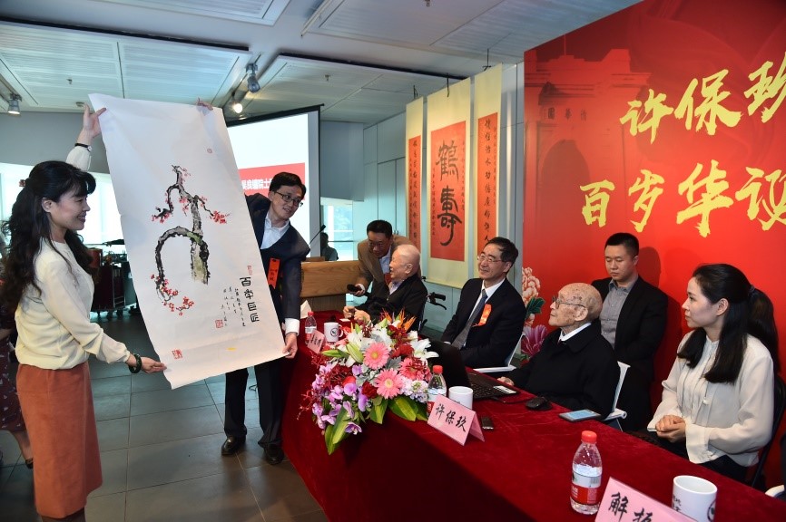 williamhill英国官网建筑公司吴良镛院士回顾了和许先生在土木与建筑系工作的岁月,向许先生送上了名为《百年巨匠》亲笔画作。