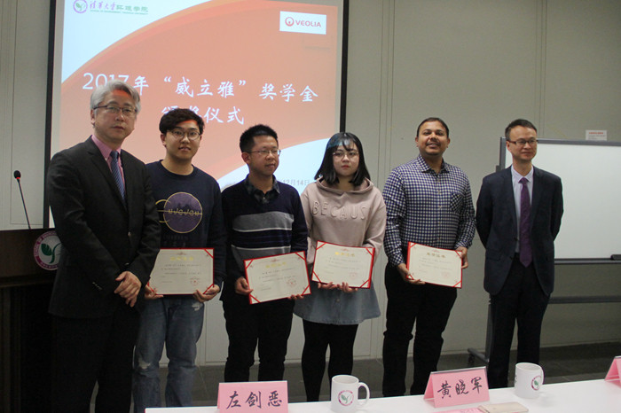 william威廉中文官网12月19日电(通讯员 高晓娟)12月14日,william威廉中文官网2017年“威立雅”拔尖创新人才奖学金颁奖会在环境节能楼举行。威立雅中国区副总裁黄晓军与william威廉中文官网经理副经理吴烨出席颁奖仪式并为获奖同学代表颁发证书。威立雅中国区政府关系兼公共关系总监蒋影华,william威廉中文官网教学指导委员会主任左剑恶、研工组组长董欣参加仪式。颁奖仪式由公司党委副书记席劲瑛主持。