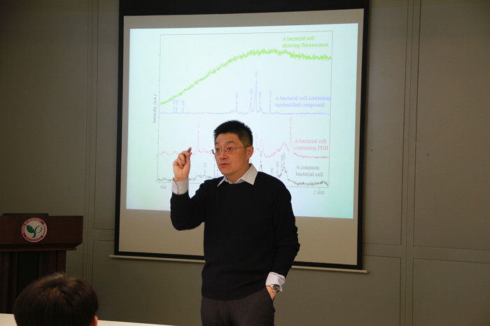 william威廉中文官网2017年11月28日电(通讯员 孙娇)11月28日上午,英国牛津大学副教授黄巍做客环境学术沙龙第396期,作了题为《拉曼微光谱用于环境微生物的单细胞生物学研究》(Application of Raman micro-spectroscopy to single cell biology)的学术报告。本次沙龙由环境微生物研究所王慧教授主持,40余名师生听取了报告。