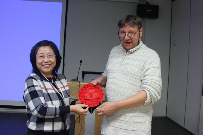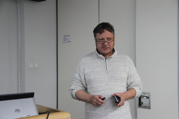 Volker Dietze重点介绍了大气被动采样技术(Sigma-2)及其对粗颗粒物的单颗粒特征分析在大气质量监测中的应用。标准的颗粒物测量大多使用主动采样器(如PM2.5,PM10采样器),但其针对远程和长期的监测存在一定困难。德国气象中心设计的被动采样设备Sigma-2可保障颗粒物不受辐射、风和降水的影响而自由沉降,收集空气中粒径为2.5-80μm的颗粒物,随后利用计算机图像处理系统,根据颗粒物大小、光学性质等将颗粒物分为透明和不透明颗粒物,并计算其质量浓度分布。此外,Volker Dietze还介绍了使用全自动真彩色技术的RGB通道和HIS(色调、饱和度、亮度)模型来区别自然成因、人为成因和生物成因颗粒物的方法。针对部分样品可继续做化学成分分析,如SEM-EDS, ICP-MS, MC-ICPMS等。已有研究较多关注颗粒物进入呼吸道后对人体健康的直接影响,却较少关注其引发的环境污染而危害健康的间接影响,如温室效应导致的全球变暖。该采样方法和分析手段可更多地用于森林、海洋等野外生态系统中大气质量的监测项目中。在讲座结束后,Volker Dietze与到场的师生进行了深入的沟通与交流。