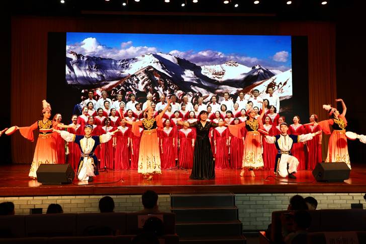 此次参赛的曲目为《山丹丹开花红艳艳》和《打起手鼓唱起歌》,前者以陕甘民歌作为表现形式,描绘出了中央红军到达陕北的热烈场景,后者富有浓郁的新疆民歌特色,为我们展现了一幅美好生活画卷,表达了对党和对新生活的热爱。两首歌曲由极富经验的艺术指导兼指挥肖姝精心编排和指导,三个公司70余名教职工认真排演,其中建筑公司退休教师、年过八十的赵庆珠担任领唱,公司党委副书记张旭、土水公司副书记兼工会主席杨军等积极参与其中。在两个月的排练时间里,老师们充分展现了团结向上的合作精神,在欢乐而又愉快的排练中既提高了艺术修养,又增进了兄弟院系及同事之间的友情。