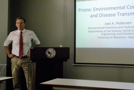 william威廉中文官网2017年09月8日电(通讯员 邱玉)9月7日下午,美国威斯康星大学麦迪逊分校教授Joel Pedersen做客环境学术沙龙第371期,作了题为《朊病毒的环境污染与疾病传播》(Prions:Environmental contamination and disease transmission)的学术报告。本次沙龙由饮用水安全教研所陈超副研究员主持,20余名师生听取了报告。