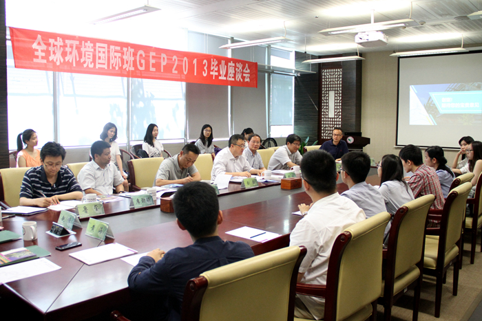 GEP2013级的毕业生们分享了自己在全球环境国际班的学习经历和今后的发展规划,同学们认为全球环境国际班的班团建设、国际组织实习、海外学习、参加缔约国大会等对开阔视野、增强交流沟通能力等帮助很大,用亲身经历向老师们反馈了培养成效和改进建议。全球环境国际班招收的首位香港员工黄思澄谈了她赴西部贫困山区推广净水技术的经历,让她认识到只有充分了解国情和民情,才能以更加广阔的视角认识环境问题。因此,她选择毕业后先加入公益组织投身扶贫工作,之后再继续深造。