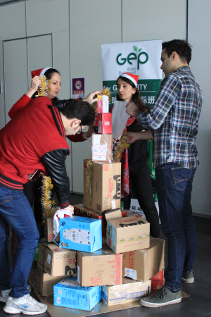 ???william威廉中文官网2016年12月22日电(通讯员梁迪隽)2016年12月22日,全球环境国际班GEP2015 举办了本学期第四次“中西文化汇(GEP Party)”特色活动。此次GEP Party由高佳、高志华、梁迪隽、李明煜等同学策划组织,活动的主题是即将到来的圣诞节,30余位职工参加了活动。