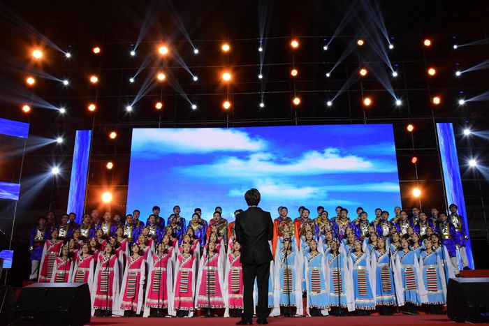 演唱会分“无畏风霜”、“光华绽放”和“传世芬芳”三幕,环境地学联队在第三幕出场,合唱了歌颂青藏铁路建成的歌曲《天路》。青藏铁路密切了西藏与祖国内地的时空联系,拉动了青藏带的经济发展,被人们称为发展路、团结路、幸福路。环境地学联队的96名硕士研究生与博士研究生同学身着藏族传统服饰,激情献唱,每位同学都饱含着对祖国母亲逐步走向繁荣昌盛的自豪感和肩负继往开来使命的责任感,悠扬的歌声萦绕整个综合体育馆,把现场观众带进了清澈美丽的青藏高原。一曲结束,全场响起了热烈的掌声。