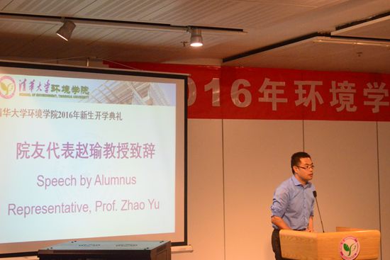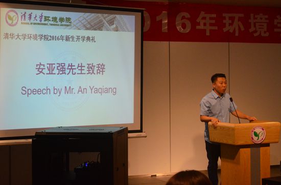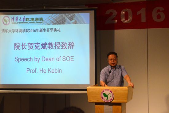 典礼的最后,贺克斌表达了对新生的寄语。贺老师以上世纪80年代出现的臭氧空洞这一大气环境问题为例,讲述了环境科学工作者在保护地球人类生存环境上所作的巨大贡献,他希望同学们认真学习、踏实研究,在未来的环境保护事业中大有所为。