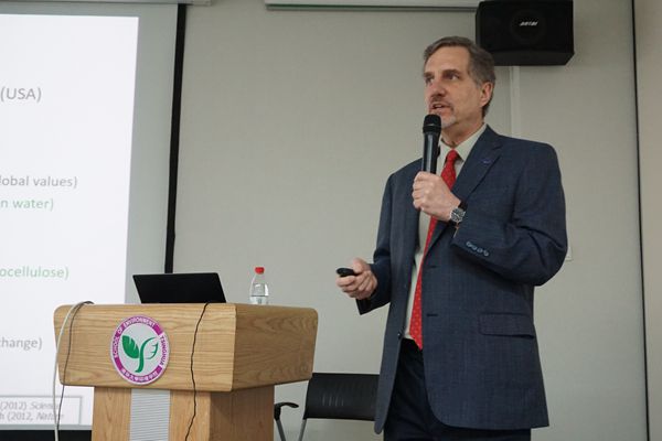 罗根教授介绍了其课题组关于盐差能电池与储热电池的研究。盐差能电池利用高浓度盐水与低浓度盐水之间的浓度梯度差进行发电,该技术对充分利用海水与淡水盐差能方面具有很大的潜在价值。其课题组还开展了利用废热进行产电以的研究,并在产电过程中实现铜等物质的资源化回收。工业生产中有很大一部分能量转化为废热,实现对废热的高效利用,对于节能减排具有重要意义。讲座后,罗根教授与现场师生进行了深入交流。