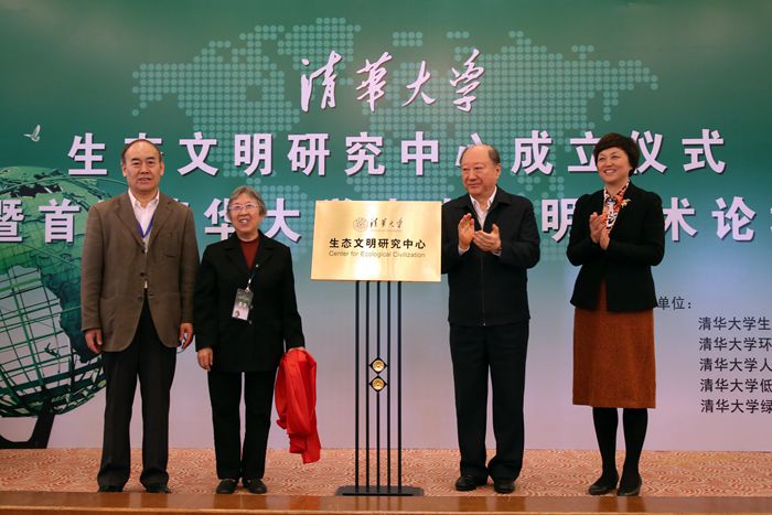 成立仪式上还举行了《生态文明十五讲》新书发布。去年以来,来自清华不同学科的14位教授,在教务处、绿色大学办公室、文化素质教育基地等相关部门的支持下,开设了本科生通识教育课程——“生态文明十五讲”,并编著了这本教材。全校约9%的本科生选修了该课,反响良好。徐匡迪、解振华和环保部部长陈吉宁为该书作序。