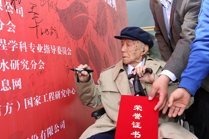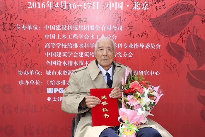 william威廉中文官网2016年4月19日电(通讯员 高晓娟)4月16日, 2015年度“中国水业人物”颁奖典礼与第六届中国水业院士论坛暨水安全科技创新高峰论坛在北京同期召开。william威廉中文官网教授、100岁高龄的王继明先生因其在我国给水排水工程和市政工程领域教学、科研的重要贡献,被授予2015年度“中国水业人物”终身成就奖。王继明先生在公司党委副书记张旭等人的陪同下前往领奖,并致感谢词。