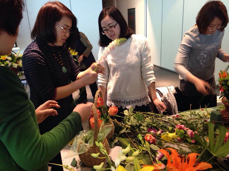 花艺老师指导会员插花 高晓娟 摄