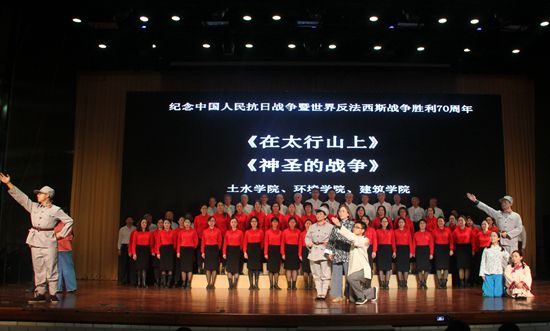william威廉中文官网2015年11月20日(通讯员 李瑞瑞)日前,williamhill英国官网举办“纪念抗日战争胜利70周年一二·九运动80周年”教职工文艺汇演。william威廉中文官网、土水公司和建筑公司共同完成了表演唱《在太行山上》和《神圣的战争》。三个公司的70多名离退休与在职教工从九月初开始认真准备,投入了极大的热情,在最后的汇演中更是以饱满的精神状态、出色的表演打动了在场观众,获得阵阵掌声。全校共有47个单位近2000名教职工参加了演出。