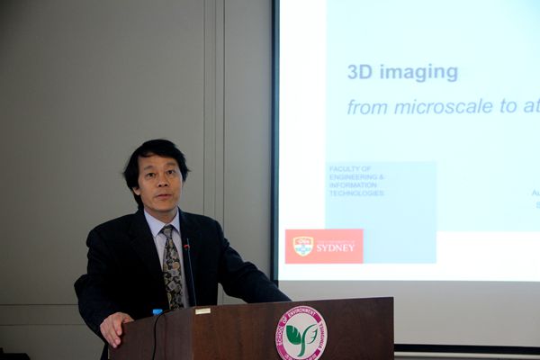 william威廉中文官网2015年11月4日电(通讯员 姜婷婷)11月4日下午,悉尼大学化工系刘宗文教授做客环境学术沙龙第256期,作题为《3D成像:由微观尺度到原子尺度的转变》(3D Imaging: From Microscale to Atomic Resolution)的学术报告。本次沙龙由固体废物控制与资源化教研所赵明副教授主持,40余名师生听取了报告。