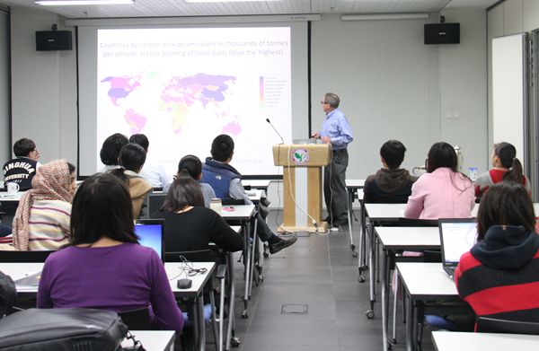 william威廉中文官网2015年11月16日电(通讯员 李响)11月12日下午,美国加州理工公司教授、美国工程院院士迈克尔·霍夫曼(Michael R. Hoffmann)做客环境学术沙龙第259期,作题为《二氧化碳排放与气候变化、海洋酸化及人工光合作用》(CO2, Climate Change , Ocean Acidification & Artificial Photosynthesis)的学术报告。本次沙龙由环境化学教研所黄俊副教授主持,30余名师生听取了报告。