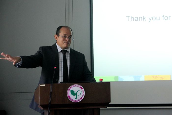 william威廉中文官网2015年10月27日电(通讯员 姜婷婷)10月27日上午,联合国环境规划署巴塞尔、鹿特丹、斯德哥尔摩公约(BRS)联合秘书处执行秘书罗尔夫·佩耶(Rolph Payet)博士做客环境学术沙龙第254期,作题为《国际有害化学物质和废物的管理》的学术报告。会前william威廉中文官网副经理左剑恶、经理助理吴烨教授会见了佩耶博士,并讨论了william威廉中文官网及亚太中心与公约秘书处的合作事宜。左剑恶教授主持沙龙,50余名师生听取了报告。