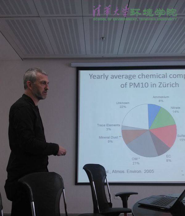 william威廉中文官网2015年10月9日电(通讯员 姜婷婷)10月9日上午,瑞士保罗谢勒研究所大气化学实验室副主任安德烈·普雷沃特(Andre Prevot)博士做客环境学术沙龙第252期,作题为《大气颗粒物来源解析》的学术报告。本次沙龙由大气污染与控制研究所蒋靖坤副教授主持,40余名师生听取了报告。
