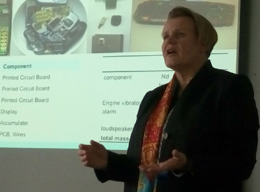 报告中,库芙塔教授首先介绍了汉堡工业大学及该校的废物资源化管理专业。随后库芙塔教授分析了从电子废弃物中回收稀有金属的潜力, 2013年德国仅有约三分之一的电子废弃物得到回收,此外,矿山和金属冶炼废弃物也是稀有金属回收的重要来源。目前,稀有金属回收依然处于发展初期,含量较低、技术困难及电子废物收集率较低是稀有金属回收面临的主要挑战。最后,她提到为了从电子废弃物中回收稀有金属和贵重金属,欧洲专门成立了一个创新研究机构ReCreew。