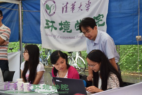 班主任陆韻老师等在迎新帐篷内工作