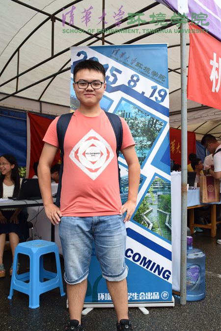 新生在迎新海报前留影