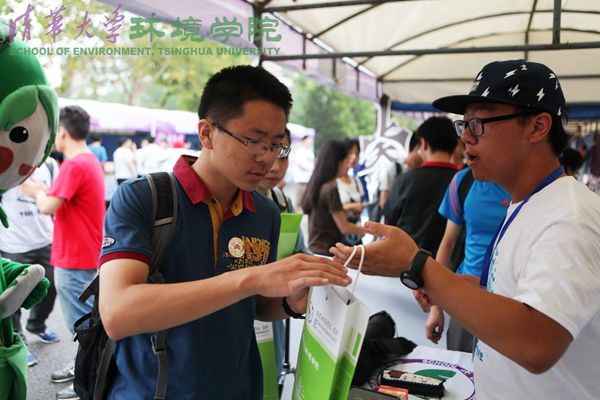 志愿者为新生发放资料袋