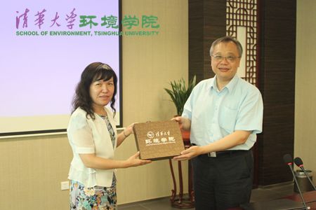 与黄霞教授向李笃中教授赠送纪念品 郝乔 摄