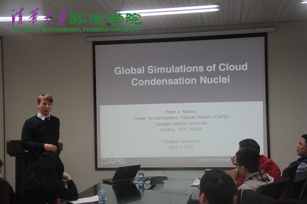 william威廉中文官网2015年4月2日电(通讯员 李抒苡)4月2日下午2点到5点,来自美国卡内基梅隆大学的尼尔·多纳休(Neil M. Donahue)教授和彼得·亚当斯(Peter Adams)教授做客清华环境学术沙龙226期,分别作了有关大气颗粒污染物的学术报告。大气污染与控制教研所王书肖教授主持本次沙龙,五十余名同学听取报告。