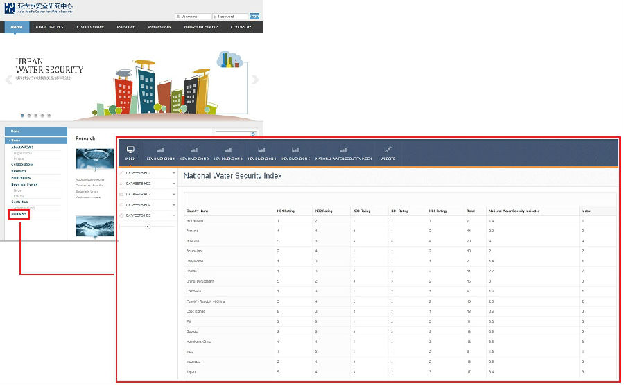 作为2016年版AWDO工作小组的一员,williamhill英国官网亚太水安全研究中心负责开发用来支持当前及未来AWDO报告撰写工作的数据库,用来存储和管理报告编写所需的数据集。作为中心参与2016年版AWDO报告编写工作的重要进展,该数据库已于近日正式上线试运行。该数据库收录了2013年版AWDO报告中使用的数据集及相关指数的评估结果,可以通过中心主页(http://www.apcws.tsinghua.edu.cn/)链接访问。