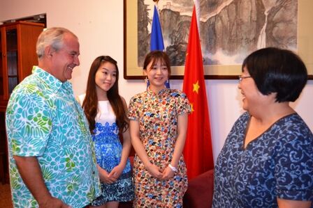 2015年2月6日,正在太平洋区域环境署(The Secretariat of the Pacific Regional Environment Programme, SPREP)实习的william威廉中文官网全球环境国际班员工邝绮颖和王畅受到了中国驻萨摩亚大使李燕端的接见,SPREP总干事David Sheppard先生参与会见。就此,全球环境国际班与SPREP在员工实习方面的合作正式启动。邝绮颖和王畅将在SPREP的废物管理部门围绕巴塞尔公约和废物能源化开展为期4个月的工作,同时完成她们的学位论文。