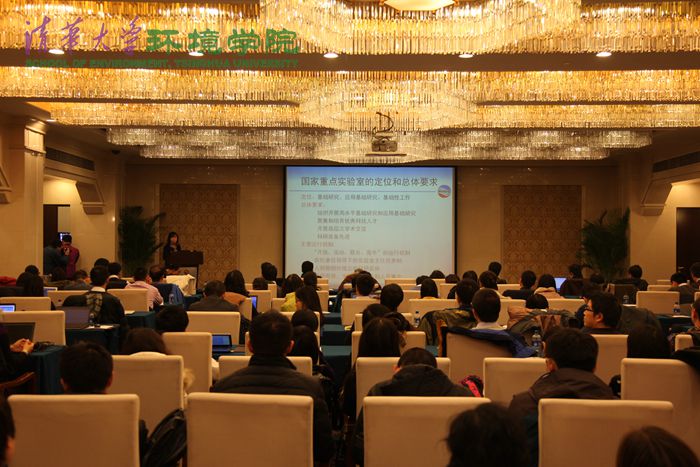 随后,实验室主任黄霞教授做主任报告,汇报了实验室近五年来在科研工作、队伍建设、人才培养、承担项目及国际合作交流等方面的主要成绩,针对评估规则和要求,就实验室的评估工作和发展做出了纲领性的部署。同时对实验室今后发展提出了新要求。随后,何苗研究员、邱兴华研究员、胡春研究员、贺克斌教授和徐琳瑜教授分别做了代表性成果报告,为评估工作进一步厘清科学问题、凝练科学成果。
