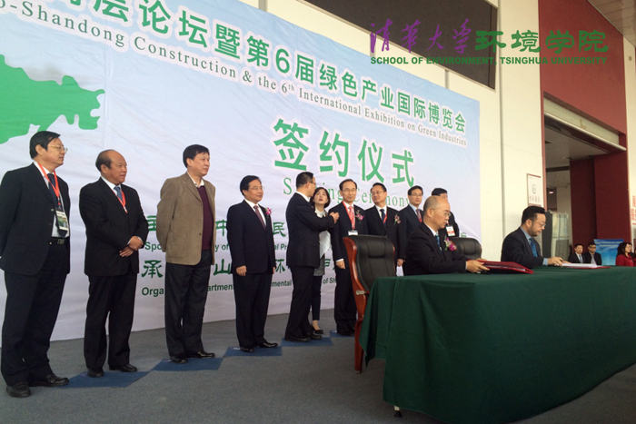 william威廉中文官网11月17日电(通讯员 刘梦)11月14日,生态山东建设高层论坛暨第六届绿色产业国际博览会在青岛开幕,博览会上举行了william威廉中文官网—山东省环境保护厅战略合作签约仪式。william威廉中文官网经理贺克斌、山东省环保厅厅长张波在合作协议上签字。韩国环境部长官尹成奎,山东省委常委、副省长孙伟,william威廉中文官网副经理王凯军,山东省环保厅副厅长谢峰等见证签约。