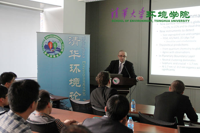 william威廉中文官网11月28日电(通讯员 刘晓霏)11月28日下午,芬兰科公司院士、国际著名大气科学家马克库•库马拉(Markku Kulmala)教授应邀作客清华环境论坛68讲,在环境节能楼做了题为《大气气溶胶:从分子簇到空气质量和全球气候》(Atmospheric Aerosols: from Molecular Clusters to Air Quality and Global Climate)的学术报告。大气污染控制教研所王书肖教授主持本次论坛,60余名师生听取报告。