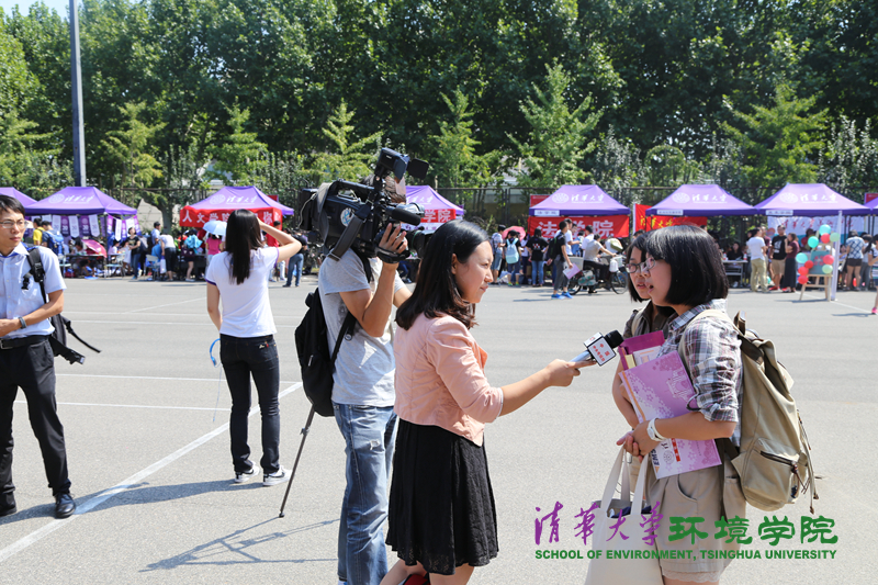 图为中央电视台对新生进行采访