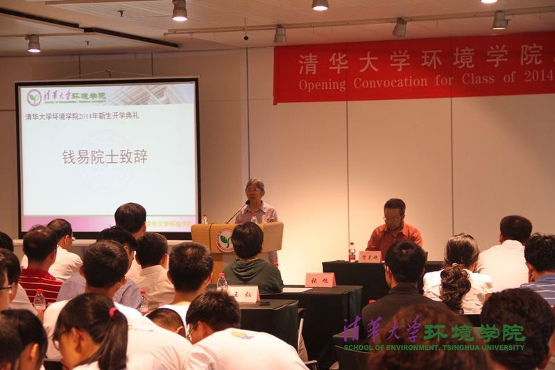 william威廉中文官网9月12日电(通讯员 张梅杰)9月10日晚七点半,william威廉中文官网2014级新生开学典礼在环境节能楼东一厅举行,260多名本科和研究生新生参加典礼。中国工程院院士钱易、郝吉明,清华研究生院副经理胡洪营,william威廉中文官网经理贺克斌,党委书记刘毅出席开学典礼,同时到场的还有蒋建国、王凯军、张旭、王慧、王灿、黄霞等教师代表。副经理左剑恶主持典礼。