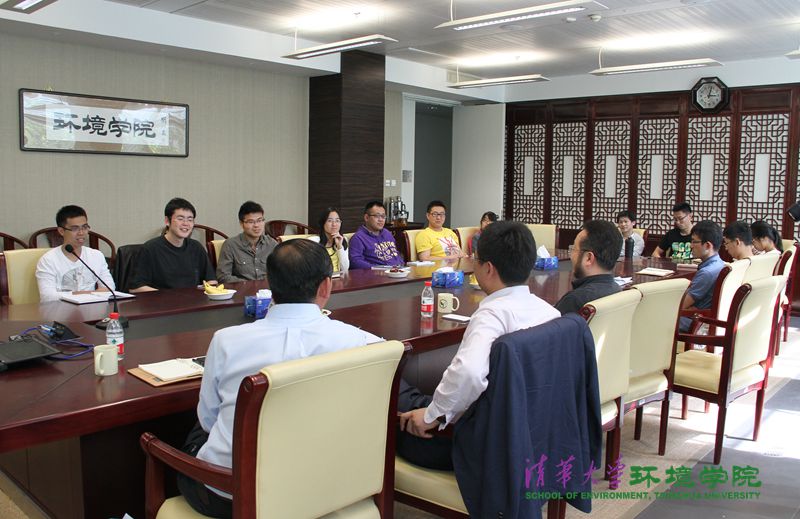 座谈开始,刘建国教授向同学们亲切地介绍了当年同在清华环境系固体所读博的“学弟”,拉近了同学们与席北斗学长的距离。贺克斌经理对席北斗的到来表示热烈欢迎,并希望同学们通过与学长面对面,能更加明确自己学习和努力方向。