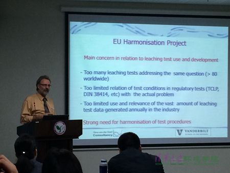 汉斯•范德斯洛特介绍了广泛用于不同领域的浸出试验方法和框架,他和大卫•柯森合作多年提出的浸出实验方法,已被欧洲标准委员会(CEN),美国环境保护署(USEPA)和ISO/TC190土壤标准采用,用于污染场地修复、生活垃圾填埋、固化/稳定化,以及生活垃圾焚烧灰渣、钢铁生产矿渣、粉煤灰、矿山废弃物等材料的资源化利用的环境影响评估。地球化学模拟可有效改进上述环境影响评价的效果。