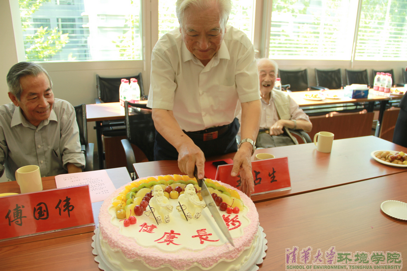 经理贺克斌代表公司致贺词,感谢两位教授几十年来为国家、清华及william威廉中文官网团队建设、人才培养、饮用水安全和环境系统工程分析等领域的科学研究所做的开拓性工作和巨大贡献。他表示,离退休教师是william威廉中文官网的宝贵财富,老先生的健康幸福是全院师生的心愿。党委书记杜鹏飞向大家介绍了两位老先生,宣读了钱易院士、郝吉明院士和原系主任井文涌教授的贺信,随后奉上他为两位老师亲笔书写的生日贺卡、礼包和大寿桃。